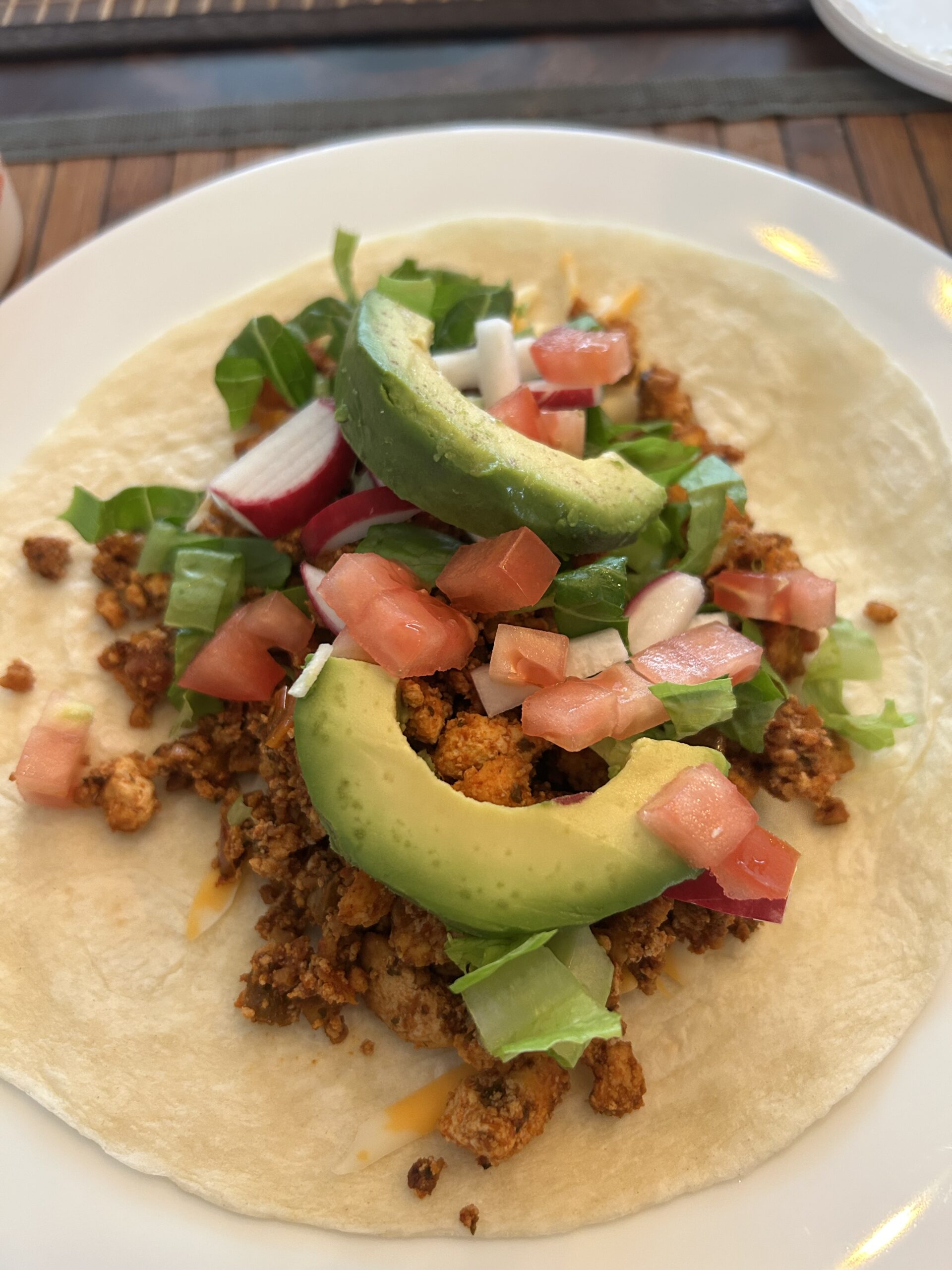 Note: This is great on a soft or hard taco with chopped tomatoes, lettuce, cheese and avocado or whatever taco toppings you enjoy!